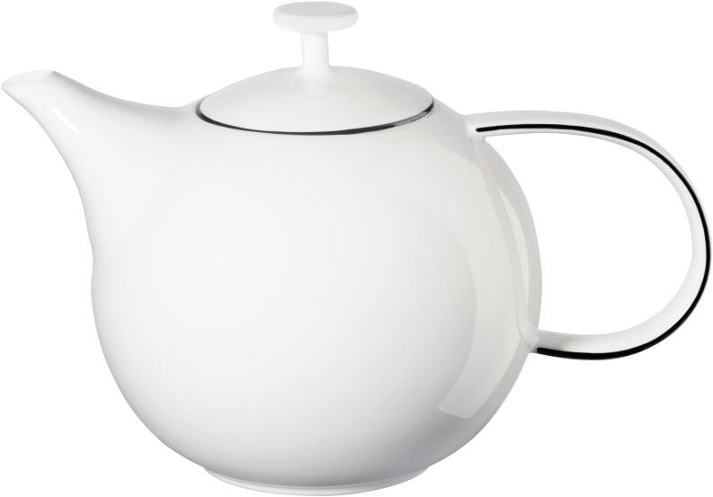 ASA Teekanne mit Edelstahlsieb à table ligne noire in weiß glänzend. Extreme Härte, warmes Weiß, klares Design und enorme Formenvielfalt: à Table hat seinen festen Platz in der hochwertigen Gastronomie, wie auch beim ambitionierten privaten Gastgeber.