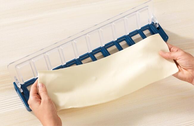 Die Wonderbox eignet sich für Blätter-, Kuchen- und Flammkuchenteig und kann nach dem Gebrauch in der Spülmaschine gereinigt werden.