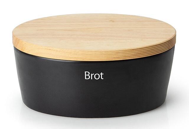 Continenta Brottopf Keramik Holzdeckel matt schwarz Brot Aufbewahrung