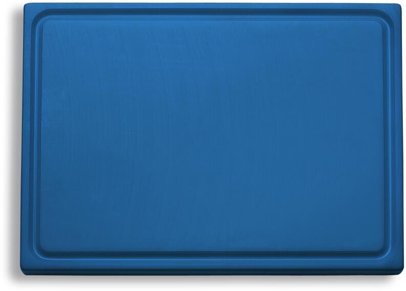 Dick Kunststoff-Schneidbrett beidseitig verwendbar in blau, mit Saftrille. Die ideale Unterlage zum Schneiden, Zerteilen, Hacken, Zerlegen oder Filetieren.