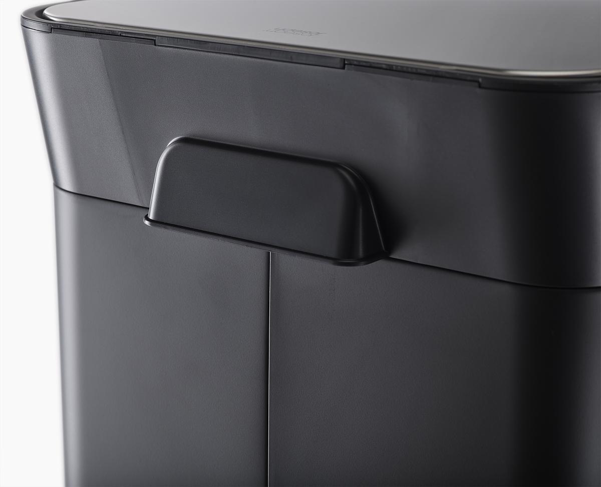 Joseph Joseph Titan Abfallsammler mit Pressfunktion in Carbon Schwarz. 30 L Mülleimer maximiert den Platz dank integrierter Müllpresse auf eine Kapazität von 90 Liter Müll nach Abfallverdichtung.
