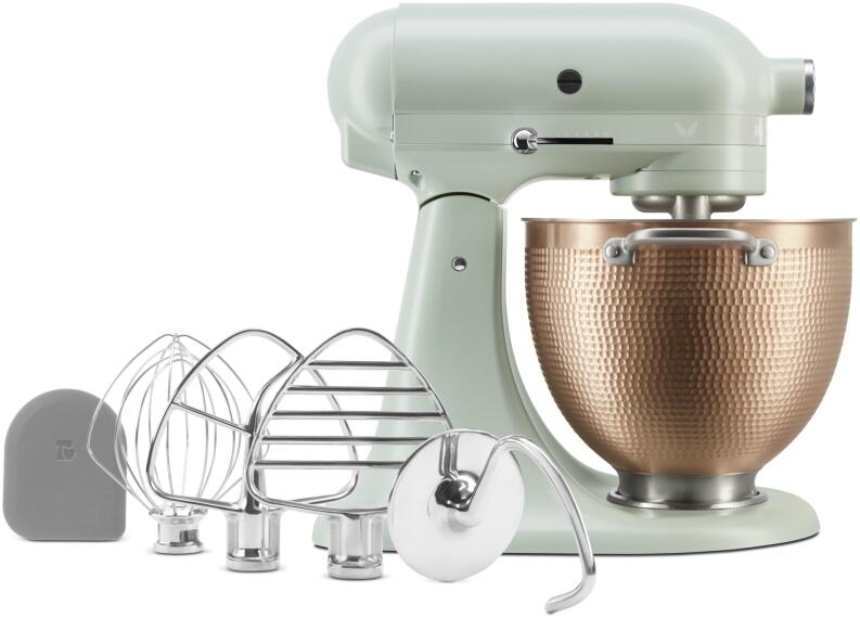 KitchenAid Küchenmaschine ARTISAN Design-Serie Blossom, 4,7 L. Das Premiummodell 5KSM180LE von KitchenAid bringt Thymiangrün und Kuper in Ihre Küche und ist die perfekte Kochhilfe für eine Vielzahl von Aufgaben. Mit Standardzubehör aus Edelstahl.