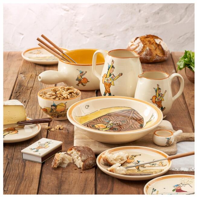 Alois Carigiet (* 30. August 1902 Trun, Graubünden; † 1. August 1985 Trun) war bekannt für seine Arbeiten als Schweizer Maler, Zeichner, Lithograf und Kinderbuchautor. Drei seiner bekanntesten Bilderbuchwerke lauten: "Schellenursli", "Der grosse Schnee" und "Flurina und das Wildvögelein". Speziell das Buch "Schellenursli" geschrieben von Selina Chönz führte zur nationalen Berühmtheit. Der Engadiner Bezug zur Natur und Landschaft ist in den Zeichnungen von Alois Carigiet allgegenwärtig. Die einzigartigen Carigiet Malereien finden sich in den Rheinfelder Keramikprodukten wieder. Alle Produkte zeichnen sich als besonderes Unikat mit liebevoller Handarbeit aus - schon das Betrachten dieser Produktelinie bereitet viel Freude.