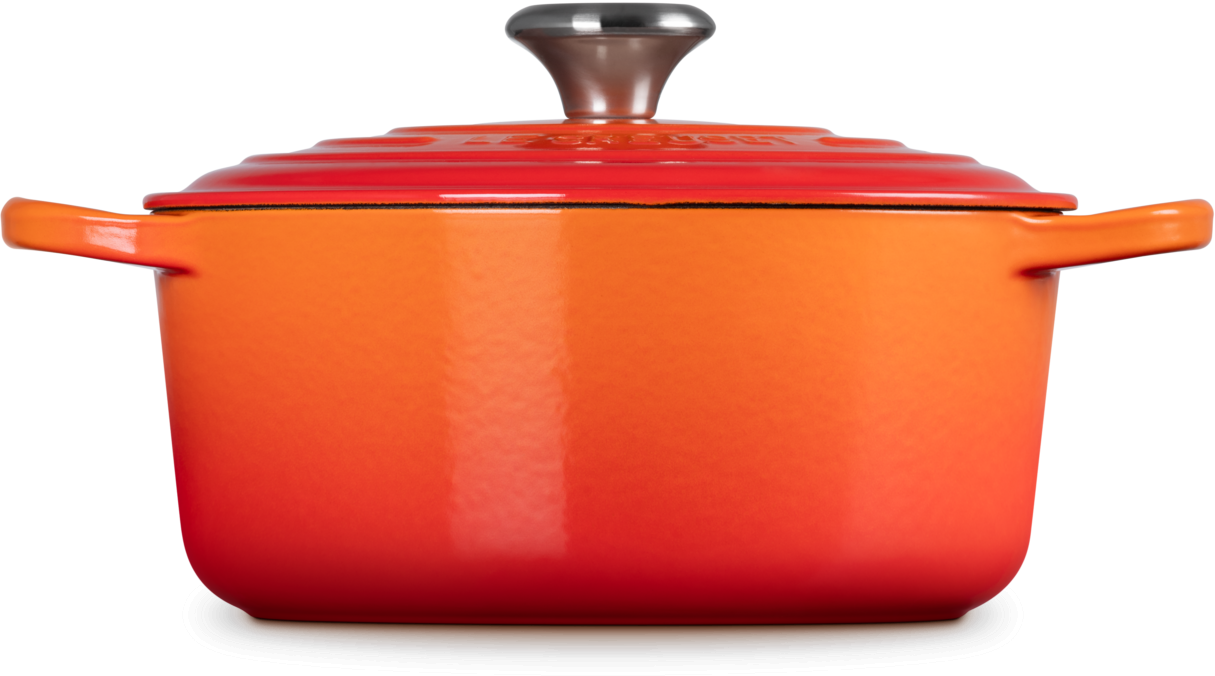 Die neue Serie Signature von Le Creuset kombiniert neue mit bewährten Produkteigenschaften. Die Signature Produkte verfügen über eine speziell entwickelte strapazierfähige Innen-Emaille, die nicht an Glanz und Farbe verliert und zudem eine hohe Widerstandskraft gegen Abnutzung aufweist. Außerdem sorgt die helle und lebendige Farbe der Innen-Emaille für ein schönes Aussehen. Alle Signature Produkte verfügen über große Griffe, wodurch ein leichter, sicherer Transport vom Herd in den Backofen und von der Küche zum Esstisch gewährleistet wird. Der ergonomische Knopf aus gebürstetem Edelstahl besticht nicht nur durch sein formschönes Design, sondern auch durch seine Hitzebeständigkeit bis zu 260 °C. Das moderne, frische Aussehen von Signature wird von einem Deckel mit deutlicher Markenerkennung komplettiert, in dessen Rand Stabilisierer integriert sind, die verhindern, dass der Deckel wackelt. Somit ist für mehr Sicherheit gesorgt.