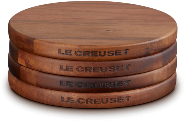 Le Creuset Holzuntersetzer Akazie 4er-Set, magnetisch. Praktisches Set bestehend aus vier magnetischen Untersetzern aus Akazienholz verhindert verrutschende Cocotten und erleichtert das Servieren.