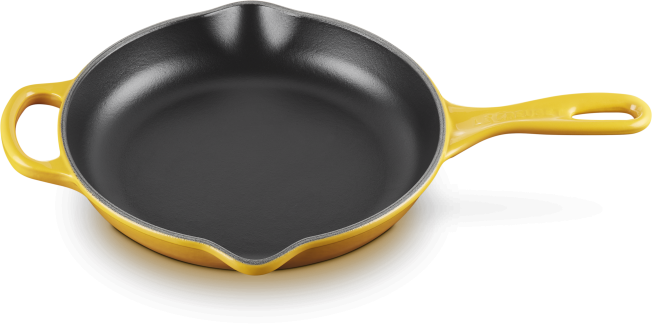 Le Creuset Pfannen aus Gusseisen zeichnen sich durch eine gleichmäßige Wärmeverteilung und eine hervorragende Wärmespeicherung aus. Einmal erhitzt, bleiben Le Creuset Gusseisenpfannen lange heiß. Das Bratgut kann selbst bei schwacher Hitze mit niedrigem Energieverbrauch in der Le Creuset Gusspfanne gebraten werden. Le Creuset Pfannen aus Gusseisen sind ideal zum scharfen Anbraten von Fleisch oder Gemüse. Kurzgebratenes erhält außen die richtige Bräune und bleibt innen saftig. Kein anderes Material brät so kross!
