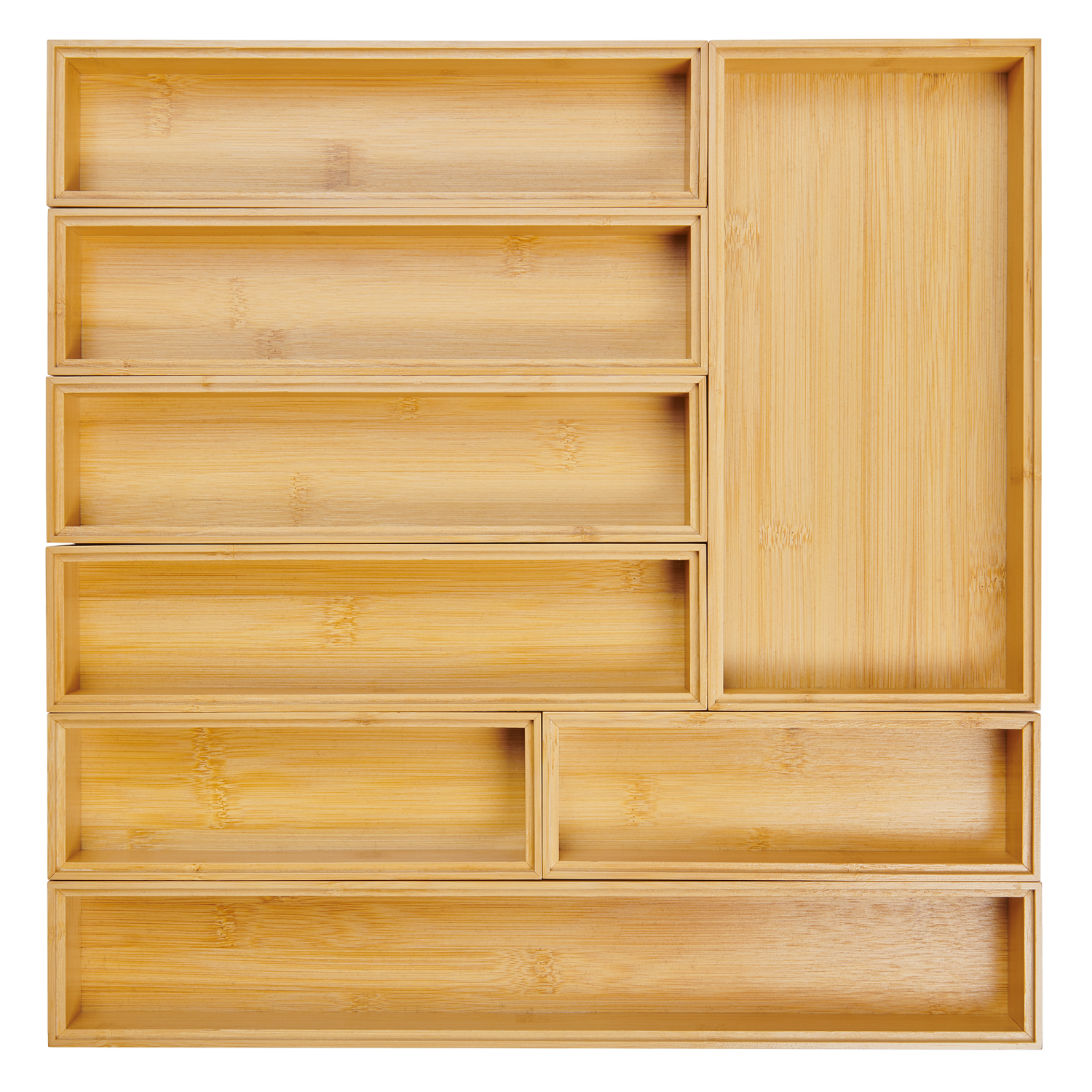 Bei dem Lurch Organizer-System stehen dir insgesamt 8 verschieden große Boxen mit einer Höhe von 5cm zur Verfügung. Wähle die aus, die perfekt für deine Schubladengröße und deinen Bedarf passen.