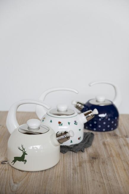 Wenn der Riess Wasserkessel „flötet“ ist es meist Zeit für eine Tasse Tee, denn der Flötenton beginnt, sobald das Wasser kocht. Die hygienischen und wärmeleitenden Eigenschaften von Emaille in Kombination mit der Form sind dabei perfekt für gesundes, schnelles, energiesparendes und sicheres Kochen von Wasser.
