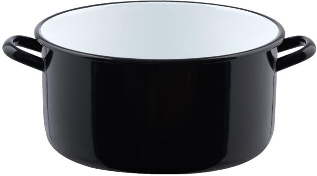 Riess Omas Schmorpfanne aus Schwarzemaille mit Deckel. Zum Braten, Schmoren und Dünsten von Gemüse oder Fleisch. In 2 Größen erhältlich.