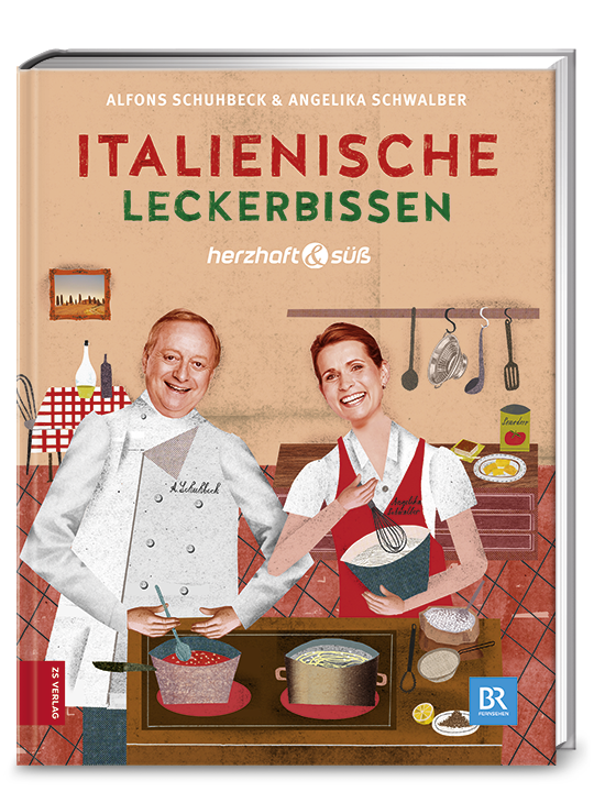 Einfach nicht zu (s)toppen, das Erfolgsduo Alfons Schuhbeck und Angelika Schwalber. Ihr neuestes gemeinsames Motto: Italienische Leckerbissen. Zehn Sonntage lang fliegen dazu jeweils um 17.15 Uhr die Wortfetzen im BR, zaubert die süße Konditormeisterin Tiramisu, Maronenherzen oder Cannoli auf der einen Seite, kreiert der herzhafte Maestro italienische Hausmannskost, wie man sie in einer typischen Trattoria findet, auf der anderen. Da läuft den amici der cucina italiana das Wasser im Mund zusammen. Da wird auch das rund 130 Seiten starke Begleitbuch für Furore sorgen. Das sechste gemeinsame Werk der beiden charmanten Küchenprofis bündelt nicht nur die Rezepte aus der Sendung, sondern hat noch einige mehr in petto. Per te, per me, per tutta la famiglia. Und einfach simpatico. Allora: den Vino bianco kühlen oder den Rosso entkorken, buon appetito und an Guadn.