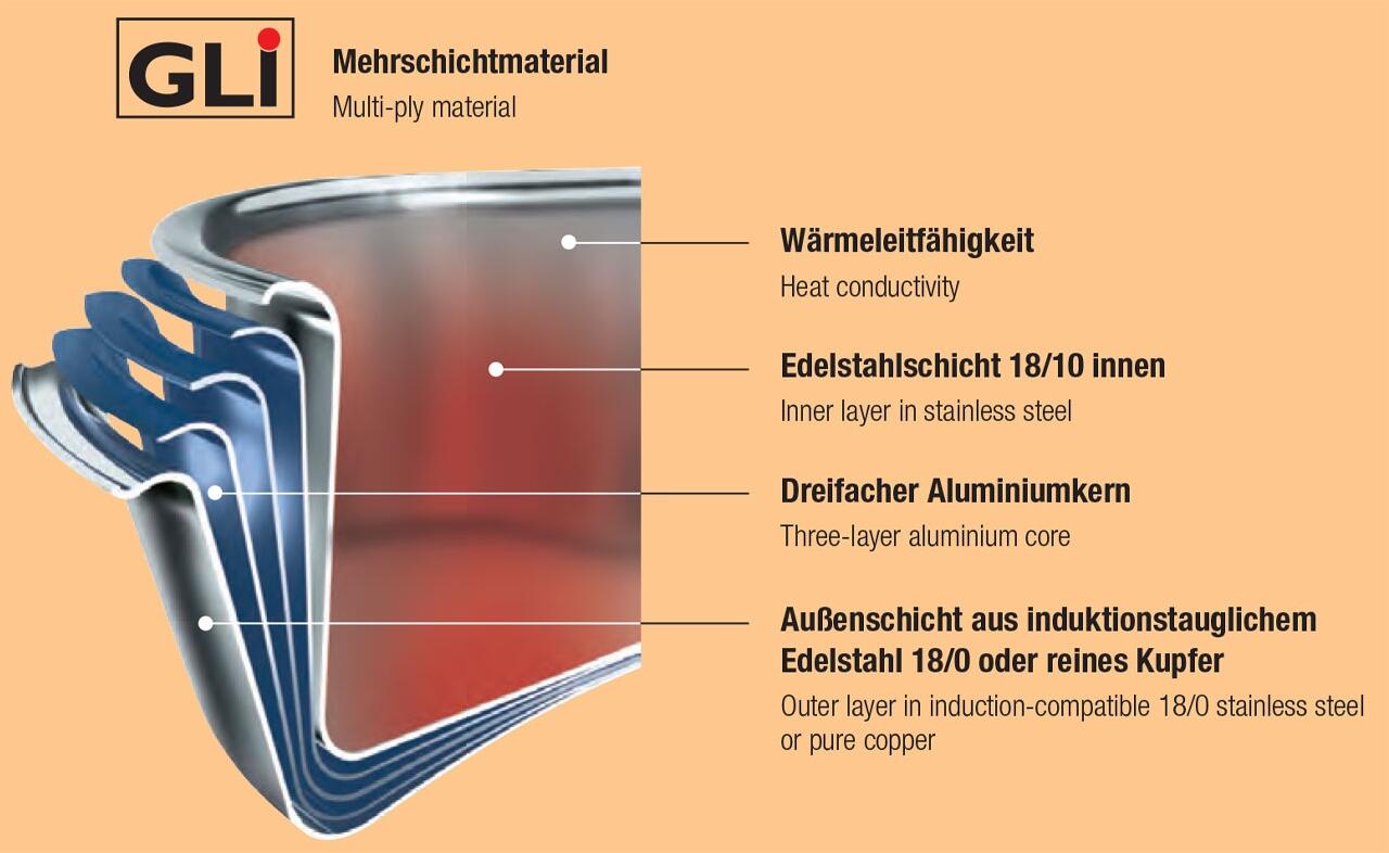 Dank der passgenauen Topfdeckel werden die Zutaten schonend gegart, die Vitamine und der Geschmack bleiben erhalten. Der geschlossene Topfrand schützt vor Korrosion, damit Sie noch viele Rezepte ausprobieren können. Dank der ansprechenden Optik und des zeitlosen Designs wandert Cristal direkt vom Herd auf den Tisch. Im Gegensatz zu Ihren Kristallgläsern dürfen die Töpfe nach dem Essen in die Spülmaschine. Die Serie Cristal ist für alle Herdarten geeignet, inklusive Induktion.