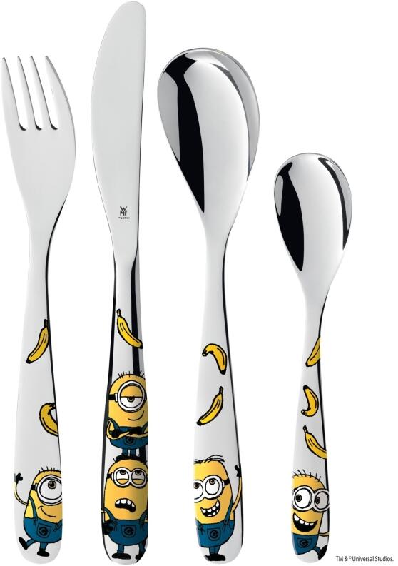 Dieses WMF Minions Kinderbesteck fördert die Fähigkeit zum selbständigen Essen und Trinken und findet seinen Einsatz bei jeder Mahlzeit z.B. morgens beim gemeinsamen Frühstück, denn auch Kinder wollen ihr eigenes Besteck haben. Das Kinderbesteck ist aus Cromargan®: Edelstahl 18/10. Damit lernen Kinder ganz schnell, wie der Umgang mit Besteck funktioniert und das Essen macht gleich viel mehr Spaß. Auf dem Besteck ist das Motiv der MINIONS in gewohnter MINIONS Optik sehr liebevoll und kindgerecht umgesetzt. Alle Teile können spielend leicht in der Spülmaschine gereinigt werden.