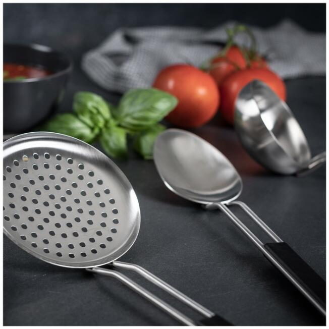 Meist sind es Kleinigkeiten, die den Alltag leichter machen. Zum Beispiel ein Servierlöffel, bei dem zu viel Flüssigkeit einfach abtropfen kann. Das Angebot der Serie reicht von verschiedenen Löffelarten wie Latte Macchiato Löffel über Tortenheber und Salatbestecke bis hin zu verschiedenen Arten von Servierzangen. Die Besteckteile der Kollektion Nuova überraschen mit funktionalen Details. Durch ihre klare Formensprache und das schlichte Design sind alle Teile vielseitig kombinierbar. Das Material Cromargan ist rostfrei, geschmacksneutral und beständig gegen Speisesäuren. Im Gebrauch ist es stabil und unverwüstlich. Alle Teile der Kollektion Nuova sind spülmaschinenfest. Nuova ist auf das Besteckmodell Atria abgestimmt. In der hochwertigen Geschenkverpackung eignet sich die Besteckserie perfekt für ein Geschenk.