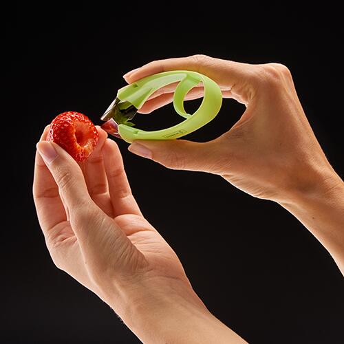 Mit dem Strunkentferner von WMF werden Stiele von Erdbeeren und Tomaten im Handumdrehen mühelos entfernt. Hierfür muss einfach der Knopf auf dem Griff gedrückt und anschließend er Knopf gelöst werden und die Strunkteile herausgezogen werden – fertig!