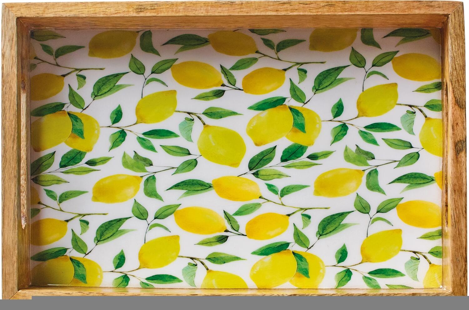 Zassenhaus Tablett LEMON, eckig, aus Mangoholz. Stilvollles Serviertablett aus Mangoholz mit dekorativem Lemon-Print.