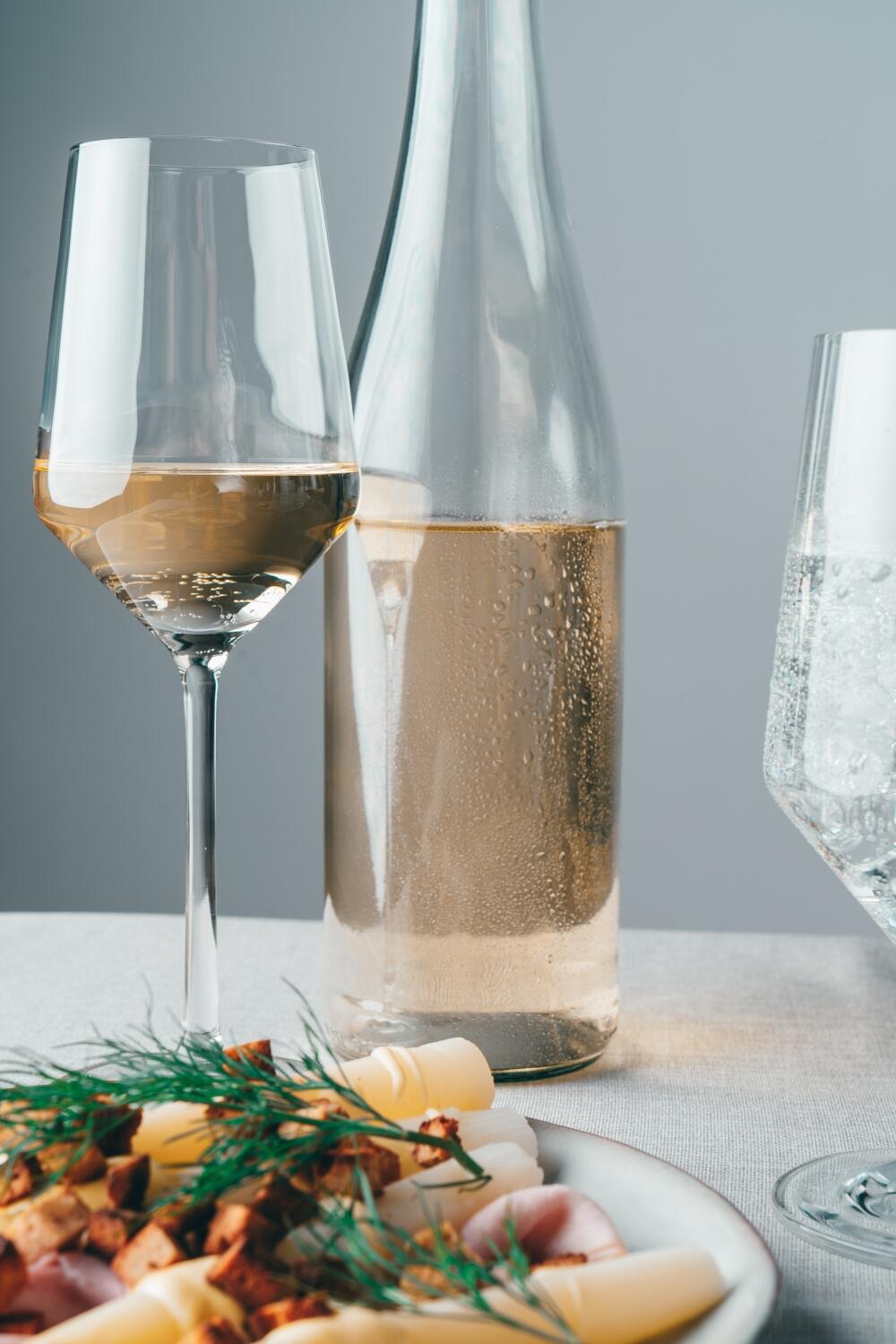 Das Weißweinglas der Serie Pure lässt elegante, leichte Weißweinsorten optimal atmen, sodass sich Aromen von voller Frucht in ihren Eigenarten vorbildlich herausbilden. Die Ausprägungen des Buketts werden durch den Durchmesser des Glases von 76 Millimetern unterstrichen. Besonders ein qualitätsvoller Riesling entfaltet die prägnante und lebendige Säure in unserem Kristallglas vorzüglich. Die Form des Kelchs fördert ein langanhaltendes Geschmacksbild. Auch Rebsorten wie Vérdejo, Weißburgunder und Grüner Veltliner kommen durch das Glas geschmacklich zur Geltung.