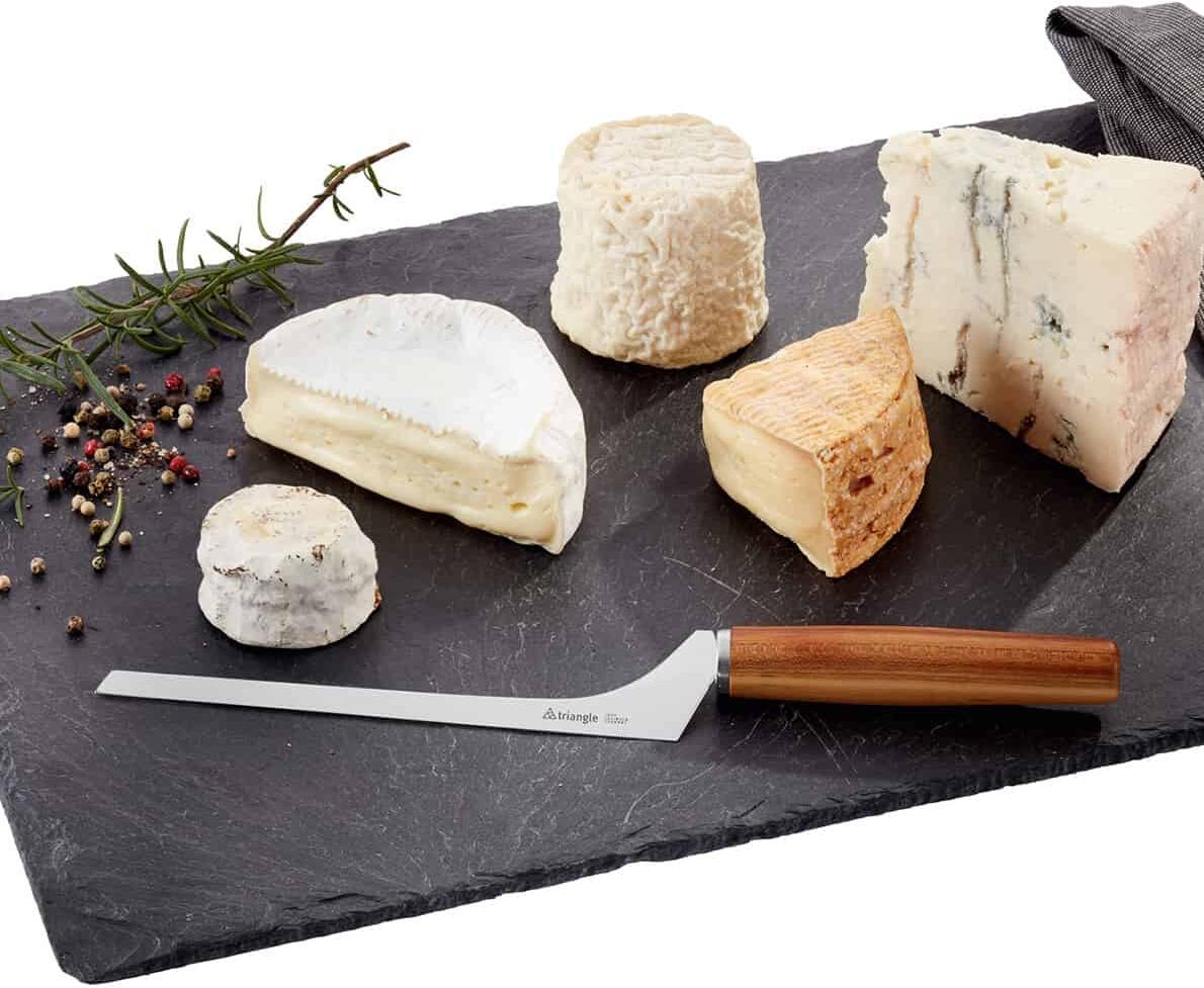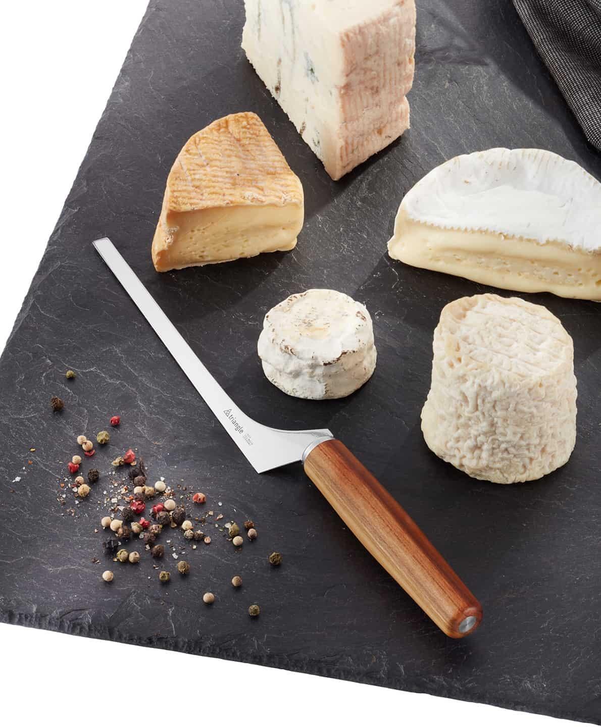Das schmale Käsemesser Sense mit Griff aus Pflaumenholz von triangle fällt mit seiner grazilen Klinge und seinem einzigartigen Design sofort ins Auge. Dank besonders schmaler Klinge bleibt Käse nicht am Messer haften. Der Griff aus Pflaumenholz liegt zudem gut in der Hand und vereinfacht den Schneidvorgang. Das Messer kommt in stilvoller und nachhaltiger Geschenkbox daher.
